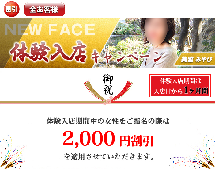 ご新規様、リピーター様に限らずご案内時には、女性による確認とお願いをさせていただく場合がございます。
